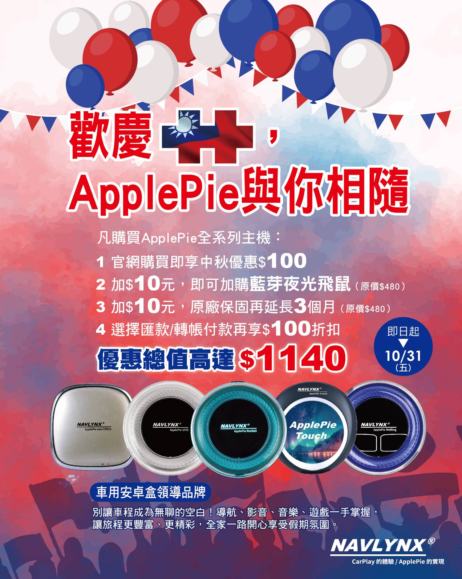 光輝十月,好禮加乘,官網購買ApplePie全系列主機,享優惠總值高達 $1,140 元